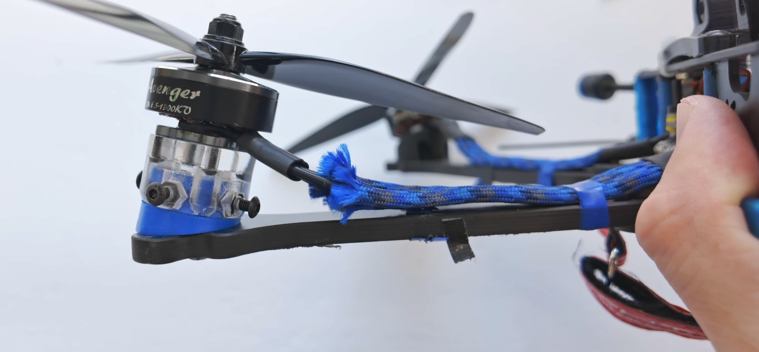 This mount tilts the motor base 15 degrees from the plane of the quadcopter arm, in any direction.