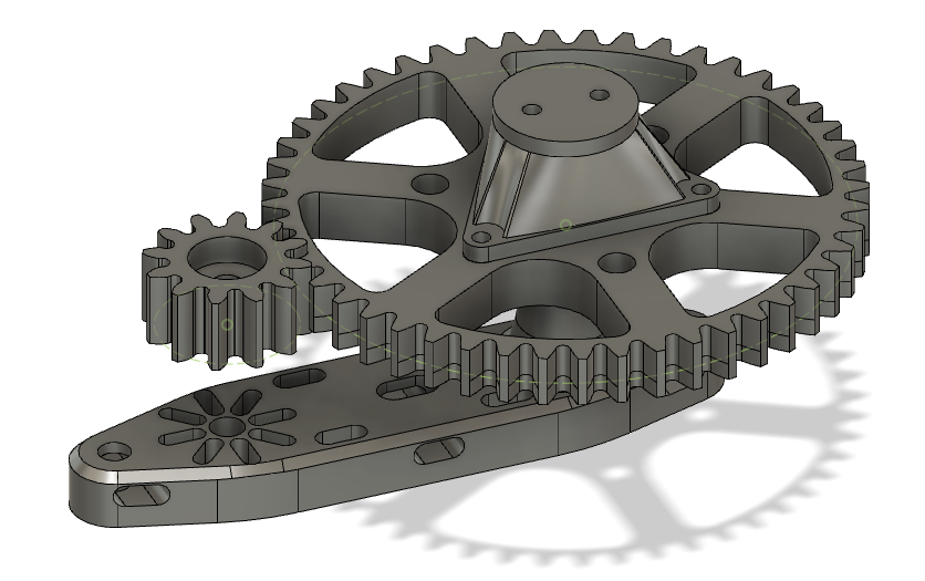 I designed this gear reduction system to allow a 2207 1800KV motor (Emax Eco II) to spin an 18" propeller for use on an experimental DIY XClass drone.