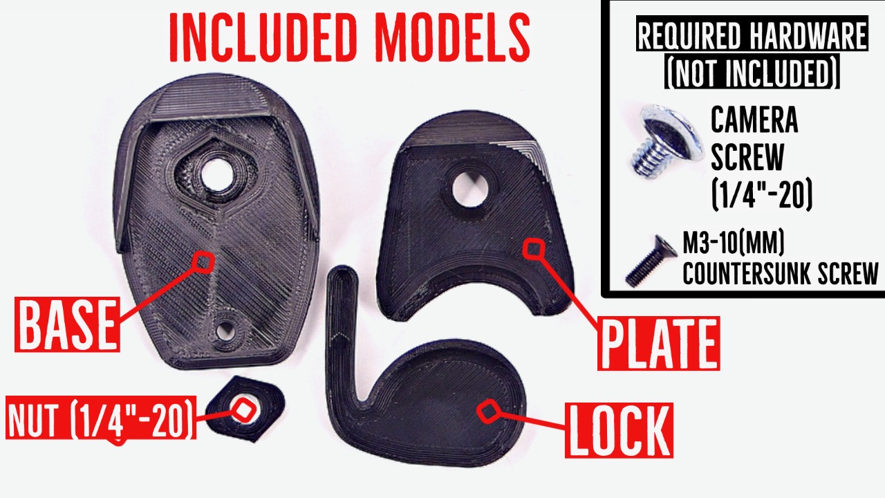 3. Optional: A metal 1/4"-20 nut (the printed nut works great, but if you may use a metal nut if you wish!).